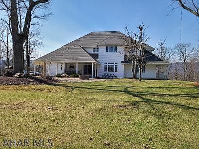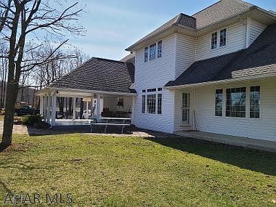 Beautiful 5 bedroom, 4.5 bath brick & vinyl 2 story home on over 5 acres. Features include: 3-car attached garage; an integral storage garage; multiple covered porches; an open patio w/fire pit; a rock fountain; a private wooded lot; a fabulous view of Altoona; slate-stone walkways; a gorgeous cherry kitchen w/island, an open floor plan, 9' high ceiling on 1st floor; radiant floor heat on 1st & 2nd floors; 1st floor laundry & master bedroom; large bedrooms, huge closets and an enormous amount of natural light. Tax ID: 14.00-13G.-043.00-000 & 14.00-13G.-043.01-000