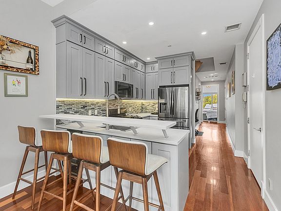 Modern tilingPrivate terracesFlexible bonus roomShared roof deckNewly renovated kitchenCustom eat-in barJuliet balcony