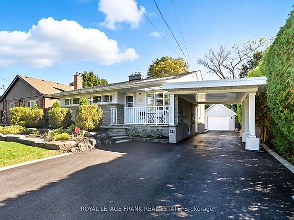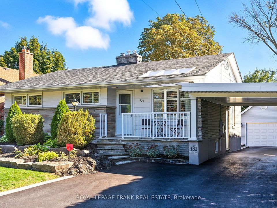 Welcome to 131 Jones Avenue, a charming 3 bedroom bungalow that exudes pride of ownership and includes a separate side entrance. Situated on a massive 52 x 150 deep private lot with beautiful landscaping throughout the property. Spacious 1.5 car detached garage with hydro / subpanel and an extended driveway with a covered carport provides parking for 6+ vehicles. Nestled in a highly desirable pocket of North Oshawa in a mature family-friendly neighbourhood.Inside you will discover a warm and functional layout. The main level features hardwood flooring throughout, a bright living room with a gas fireplace and large picture window that fill the space with natural light, a cozy dining area, and a practical kitchen with ample storage and counter space. Upstairs, youll find 3 spacious bedrooms and a full 4pc bathroom, perfect for a growing family. The lower level offers a large recreation room, 4th bedroom or home office, and 3pc bathroom, which could be converted into a functional in-law suite with its separate side entrance. An abundance of storage space throughout the home. Step outside to a private backyard with mature trees and interlocking stone patio, providing a peaceful setting for relaxing or entertaining. Large garden shed provides additional storage. Situated close to schools, parks, shopping, and transit, this home offers convenience and comfort in an established community. Updated furnace, a/c roof, insulation & eaves-troughs in 2014.