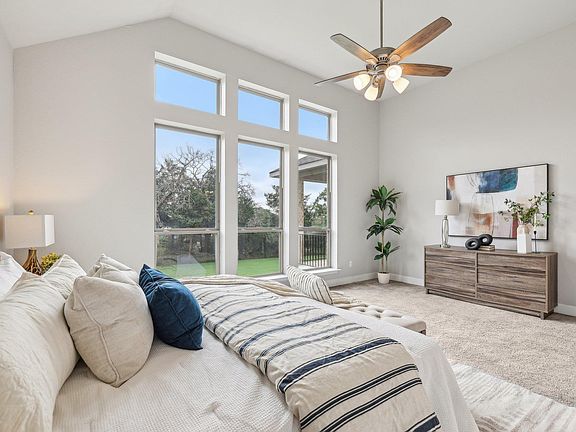 Welcome to this well-maintained Perry Home located in the highly sought-after gated community of The Colony. Situated on a spacious .308-acre lot that backs to greenspace, this home offers added privacy and a generous buffer between neighbors—perfect for peaceful living both inside and out. A striking two-story entryway welcomes you in, with a dedicated home office behind French doors and a formal dining room framed by a graceful curved staircase. The open-concept layout flows into a two-story family room with a wall of windows that flood the space with natural light, and a kitchen designed for entertaining, featuring a large island with seating and a cozy morning area. The primary suite on the main level boasts a 12-foot ceiling and a luxurious en-suite bath with a dual vanity, soaking tub, glass-enclosed shower, and an oversized walk-in closet with direct access to the utility room. A second downstairs bedroom offers flexibility for guests or multi-generational living. Upstairs, enjoy a spacious game room, a dedicated media room, and two additional bedrooms. Step outside to an extended covered patio, ideal for relaxing or entertaining, and room to add your touch. Residents of The Colony enjoy access to an amenity-rich community featuring a pool, playground, sports courts, trails, and more. With thoughtful design, quality craftsmanship, and a premier location, this home is the perfect blend of comfort and convenience.