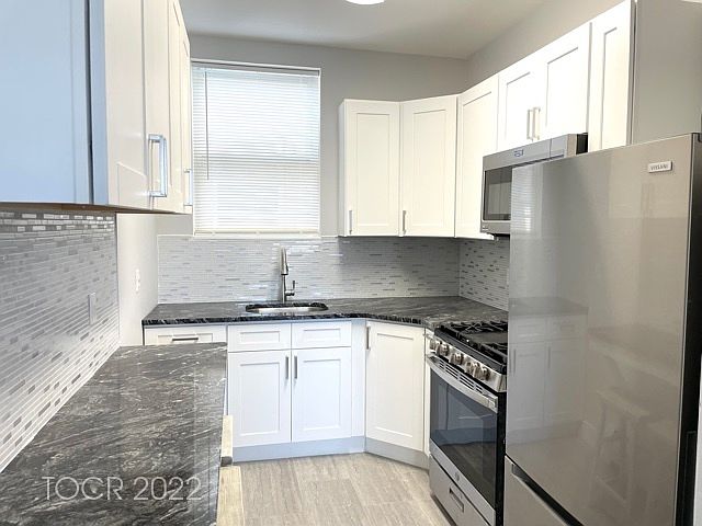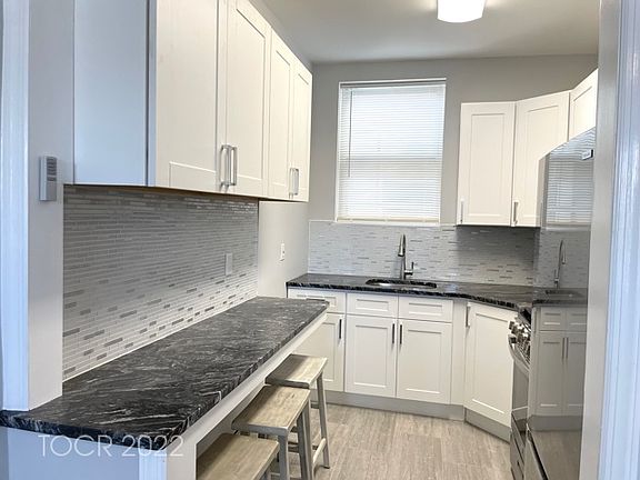 Beautifully renovated top to bottom apartment light and bright. Completely renovated kitchen granite counters, stainless appl., granite breakfast bar with stools. Master bedroom with two closets. Lg living room with two windows. Completely renovated bathroom with beautiful tiles. Hardwood floors. Fabulous location. Close proximity to all NYC transportation, shopping and restaurants. Apartment above stores. Move right-into this beautiful apartment.