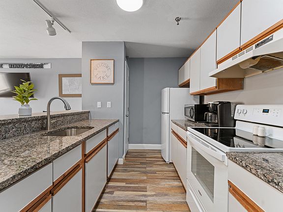 Fantastic opportunity to own your low cost get-away in the Lakes Region of New Hampshire. This well appointed and fully furnished condominium has close proximity to Paugus Bay, the Gilford Town Beach, Weirs Beach, shopping, restaurants and more. There is an in ground pool, recently renovated patio and nice common area with bar and TVs. This unit features open concept living with large living and updated kitchen areas separated by a bar/dining space. There is a full bath as well. The association fee covers all your expenses to operate this unit and there is an in-house rental agency to help you monetize it as a rental property. Amenities in the lower part of building include a self storage facility, café and gift shop, billiard hall and an indoor virtual golf center.