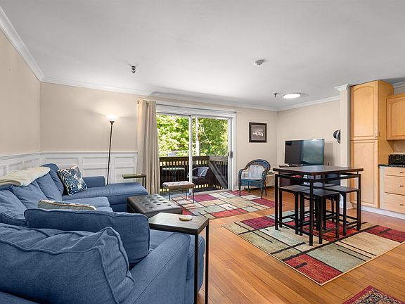 Are you looking for an affordable lake get-a-way with the ability for rental revenue? Short term rentals are allowed here. This 2 bedroom, 1 bath condo has beach rights to the beautiful Gilford town beach, town boat launch, lake view from the deck, and has seasonal boat & trailer parking at the back of the building. Open concept with a nicely appointed kitchen boasting granite counters, stainless steel appliances, good size living, and dining area, includes newer laminate flooring, 2 carpeted bedrooms, and tiled bath with twin sinks and granite countertop. Unit is coming 95% furnished ready to use. Enjoy relaxing around the brand-new pool area complete with BBQ area, spend some time at the beach or go boating from one of the many nearby marinas. The condo fee covers all utilities, including electric, heat, air conditioning, cable TV, internet, water, sewer, hot water, trash, landscaping, plowing, and pool maintenance. As an added bonus there is a dynamite Italian restaurant on premise. This property cannot be used as a permanent residence and occupancy cannot exceed a 180-day period per guest. No Pets.