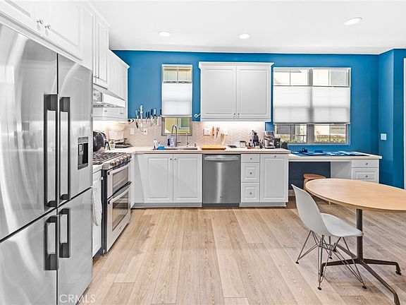 Welcome to Lantana @ Beach! This newer, large 2 bedroom, 2.5 bath, 2 story townhome has modern features you will fall in love with. Open floor plan with accent walls, high ceilings with recessed lighting and large windows for natural light. The designer kitchen opens to the living room and features quartz counter tops and modern white cabinetry. Two spacious bedrooms both with walking closets, upstairs laundry room. You will also find luxury vinyl plank flooring downstairs and luxury carpet upstairs, Lutron dimmer switches, central air, and more. The home is equipped with energy efficient features such as a solar system, tankless water heater, and tinted dual pane windows to name a few. There is an enclosed patio perfect for a weekend BBQ, and an attached two car garage with plenty of storage. Enjoy the pool and lounging on the spacious deck. Connect with your neighbors at outdoor social spaces and the play area. Or stroll to Rodeo 39, the retail hub next door with hip eateries, shops, fitness, and public art. This home is close to everything you love about Orange County. Quick access to the 22, 405, & 5 freeways. Next door to Garden Grove and Huntington Beach, and less than 30 minutes to Irvine. Low HOA fees and No Mello Roos. You will enjoy living at Lantana!