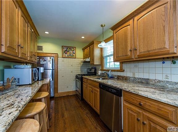 "Heart Of Merrick Woods" -- Classic Stone Rear Dormered Cape-- O/S Property -- 1/5 Of An Acre--Tri-Level Deck & Firepit! Lrg Landscaped Backyd & Sideyard W/Det. Garage! Central Air Is On The Main Level Of Home--Baseboard Heating Upstairs! This Fine Home Offers New Appliances, New Roof & Windows, Mcclain Boiler & Upgraded Elec. Box! Granite Eik & Sunroom R Extras!