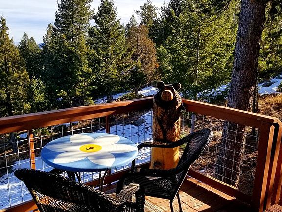 Rustic charm meets modern comfort.1.46 acres nestled in the heart of nature.This stunning 2 bedroom,2 baths mountain cabins' open concept design maximizes natural light,space & views.Find peace & tranquility while sipping your favorite beverage in the cozy living room featuring 17 ft. vaulted ceilings & a wood burning stove,or enjoy the serenity of the outdoors on the spacious deck with incredible views, ideal for gatherings under the stars.The functional kitchen blends practicality, rustic charm, & efficient use of space.Skylights in the Primary,upper level bedroom.Main floor laundry.Property includes a 320 sq ft guest cabin w/electricity & a shed. 2 minute walk to stocked pond, picnic area. MUST SEE!