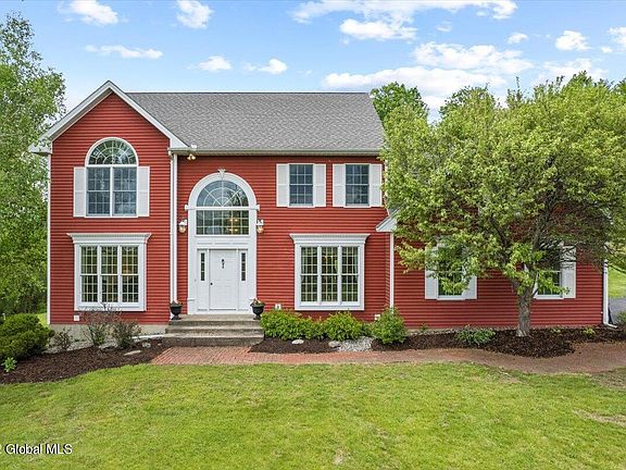 Incredible views - this wonderful 4BR Colonial has all you would expect and some great features! Set on a rise looking over meadows and mountains this home has the privacy you crave. Lots of room and lots of storage- and good sized bedrooms. The family room with vaulted ceilings and a wood burning fireplace is great for gatherings. There is even a first floor office with built-ins for working remotely. The walk out basement features a Harmon dual fuel furnace as well as a traditional furnace. Above a rise and behind the trees is a cement pad used for a hockey rink, or could be used for hoops or RV storage. Come see this beautiful home!