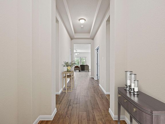 Welcome to this beautifully crafted single-story home in the highly sought-after Star Ranch community. Built in 2027, this 4-bedroom, 2-bathroom home offers 2,186 square feet of thoughtfully designed living space with style, comfort, and convenience in mind. Step inside to an open-concept layout that seamlessly connects the living, dining, and kitchen areas perfect for entertaining or everyday living. The kitchen features a large island, granite countertops, stainless steel appliances, and 42-inch upper shaker cabinets, providing both function and elegance. The fourth bedroom, outfitted with French doors, is perfect as a home office or flexible living space. Throughout the main areas, you'll find beautiful wood-look tile flooring, with plush carpet in the bedrooms for added warmth. The spacious primary suite includes a luxurious en-suite bath with an oversized custom walk-in shower with dual shower heads, and a large walk-in closet. Step outside to a spacious backyard designed for relaxation and entertaining. Enjoy the shade of the covered patio and the extra space of an extended patio ideal for grilling, gatherings, or quiet evenings under the stars. Located just 2 minutes from H-E-B and the 130 toll road, this home offers unbeatable access to downtown Austin, the airport, and major tech hubs. You're only 10 minutes from Stone Hill shopping center and just 15 minutes from the new Samsung plant in Taylor. With modern finishes, a flexible layout, and a backyard ready for outdoor living, this Star Ranch gem has it all. Come see it today!