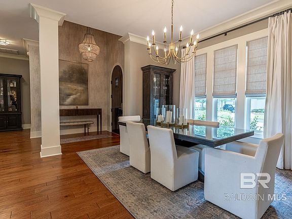 Nestled among a magnificent grove of ancient oak trees, this meticulously maintained home offers elegance, comfort, and peace of mind with a full-house generator hookup and Gold Fortified construction. The spacious open floor plan features a chef’s kitchen with top-of-the-line KitchenAid commercial appliances, including a 42" stainless refrigerator, 36" gas range, wine fridge, microwave, and even an ice maker conveniently located in the laundry room. The great room and den overlook the breathtaking backyard oaks, with beautiful drapes that convey. The primary suite boasts wood flooring, a luxurious bath with two walk-in closets, built-ins, double vanities, granite countertops, soaking tub, and an oversized luxury shower, plus a private 12x11 sitting room or office. Additional highlights include three full garages, whole-home water filtration, central vacuum, alarm and irrigation systems, two Rinnai tankless water heaters, and dual-zoned HVAC with built-in dehumidifier. Hurricane-rated 140 mph windows, wood flooring downstairs, and thoughtful finishes throughout elevate this home’s quality. Located in a secure gated community, this residence is designed for both refined living and lasting durability. Buyer to verify all information during due diligence.