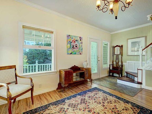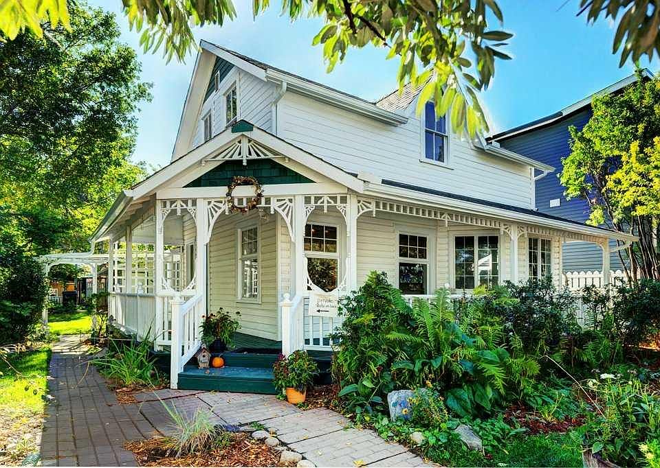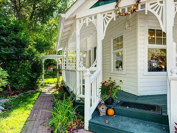 Wraparound porchDetailed ornamentationOriginal design elementsSpindle staircaseOrnamental wainscotingAntique light fixtureStone fireplace