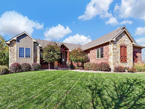 Friendly front porch welcomes you with room for morning coffee and chats with neighbors. Massive iron front door with hinged grates that can be opened for fresh air opens to the stunning main floor living area. Great Room has high vaulted ceilings, fireplace surrounded by stone and substantial mantle. This is the hub of the home as it opens to the kitchen where you’ll find a large granite island with seating, stainless appliances, and ample prep and serving space. One kitchen wall features beautiful cabinetry with space for a beverage frig and open shelving above, centered with a wine rack. You’ll love the walk-through pantry with deluxe storage, a second oven, a sink, room for microwave and a magnetic white board. Barn doors on either side can close off the pantry. Off the pantry is a drop zone with wood wainscoting and the laundry. Lovely formal dining room has great natural light and plenty of space for large pieces of furniture. A split bedroom plan, the primary bedroom anchors one side of the home with a beamed coffered ceiling and offering a bath with double vanities, tiled shower and walk-in closet. Two other bedrooms are spacious and are on either side of the hall bath with fully tiled tub/shower. What a fun basement with view out windows, home theatre system, space for game tables and a walk-up wet bar with brick wall. There are two more bedrooms and a full bath rounding out the lower level. A favorite to all is the covered deck with the roof lined with reclaimed tin siding from a barn in Butler County. Enjoy your time spent on the deck with its gas log fireplace and built-in TV. There is also a dedicated gas line for your grill. Sideload garage on this corner lot is oversized and has high ceiling perfect for more storage or a car lift. Irrigation is on a well for savings. Govee lighting in the soffit is fun for any holiday! Location is close to every amenity you need. Quick access to highways. Call this one yours – it’s a true gem!