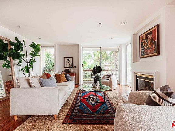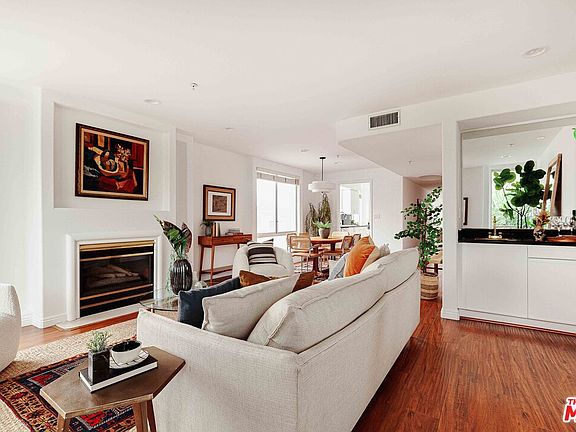 Light-filled & spacious South-facing unit w no shared walls in a fantastic central location.This is one of just 8 units in a small building w only 2 units per floor. Mins away from Bev Hills, WeHo, Cedars Sinai, Bev Center, the future metro stop at Wilshire/La Cienega & shopping/dining on 3rd, Beverly & Melrose. The bright & airy living rm looks out onto a balcony among the trees & features a fireplace. The open concept dining area leads to the art-deco style kitchen w double oven & lands at a den where one can cozy up in front of the TV. Two sizable guest bdrms share a large Jack & Jill bth. The primary bdrm suite feat a large bthrm w tub & dual vanity, a fireplace, 2 walk-in closets & a priv balcony w views of the Hills & a custom built-in daybed.The layout allows for privacy in the bdrms resulting in a good work-from-home environment. Hrdwd floors throughout, new dual zone cent HVAC, in-unit laundry, 2 parking spots in a priv garage w storage. Common rooftop deck w 360 views.