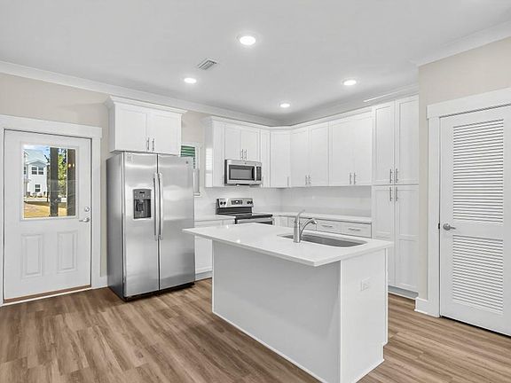 This Vista floor plan offers 3 bedrooms, 2.5 baths, and 1,336 sq.ft. of thoughtfully designed living space. The open floor plan with kitchen island includes luxury finishes such as quartz countertops throughout, stainless steel appliances, soft-closing cabinets, and luxury vinyl plank flooring on the first floor and carpet on the second floor. Blinds and refrigerator are included for added convenience. Upstairs, you'll find a laundry room with a washer/dryer included, a Jack and Jill bathroom between the two back bedrooms, and a spacious primary suite. A large back patio with storage closet completes this well-appointed home.