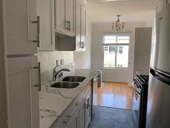 Gorgeous, sunny and spacious upper one bedroom in prime Beverly Grove. Enjoy your own balcony overlooking a lush landscaped courtyard. Art Deco 8 unit building with original hardwood floors, and decorative moldings. Newly remodeled kitchen with stainless steel appliances including refrigerator, dishwasher, microwave and gas stove. New bathroom with walk-in porcelain tiled shower , flooring and quartz countertops. Newly installed oversize double pane windows and blinds. Window air conditioning and central heat. Brand new In unit washer and dryer. There is a separate dining room, separate front and back entrances, lots of closet space. Well managed and well maintained building with great neighbors. This apartment is walking distance to The Grove, Beverly Center, West Hollywood, restaurants and shopping on 3rd Street and a short drive to studios and downtown. Building owner pays for water, trash& gardener. A $25 fee is required to run a credit report. Private garage parking . First months rent and security deposit are due at signing.