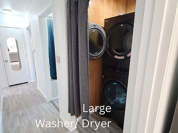 Stainless Steel appliances including refrigerator with built in touchpad, dishwasher and deep basin sink. Electric stove completes the kitchen. Stainless Steel LG washer and dryer units are ready for your laundry.