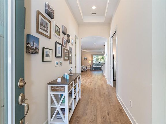 Welcome to Venice FL, where you’ll find the perfect blend of coastal beauty, small-town charm, and an active lifestyle. This island town’s charming main street area offers everything from a seasonal farmer’s market to shopping, dining and one of the country’s largest community theaters. Grand Oaks is truly in the heart of it all, located three miles to downtown Venice and Venice Beach. Three semi-private Championship Golf Courses – Capri Isles, Calusa Lakes and Waterford Golf Club – are also just minutes away from this private, gated enclave of only 55 homes. There is nothing quite like Grand Oaks with its low fee, low maintenance, active social lifestyle centered around the Residents’ Club. This Coastal themed Valencia plan offers 2 bedrooms and 2 baths plus a den. Hurricane impact glass throughout the home provides year-round peace of mind and comfort. Tray ceilings emphasize ceiling heights of 12' in the Foyer and 10' in the Great Room and Dining Room. The Kitchen is equipped with GE Slate fingerprint resistant appliances, custom wood cabinetry with 3” crown molding, under cabinet lighting, and granite tops with decorative backsplash. The open concept design and 8' tall by 12' wide pocketing glass doors open the home to the Lanai and enhance the lush, private view of the greenery surrounding the community. A relaxing Owner’s bath features a luxurious soaking tub, separate shower, and separate vanities with abundant storage under granite counter tops. Please call now, your Grand Oaks lifestyle awaits!