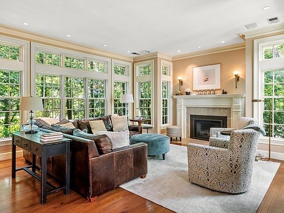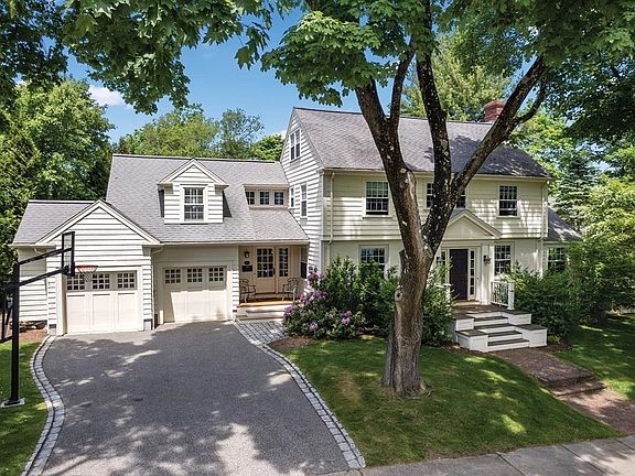 This lovely, expanded Colonial-style residence offers a superb layout for comfortable living in a picturesque setting. Highlights include great light throughout, four finished levels, an attached two-car garage, backyard patio area, and pretty side yard. The first floor includes a 2018 renovated kitchen with large center island and adjoining family room with walls of windows and gas fireplace. Also on this level are an elegant dining room with fireplace, living room, bright study, half bath, and three-season porch. The second level has four bedrooms, including a primary, and three bathrooms, each renovated in 2017. On the third floor are two additional good-sized bedrooms. The expansive lower level features a family room, gym, and full bathroom plus a well-equipped laundry room, storage room, and cedar closets. This property is beautifully situated with easy access to the aqueduct trail, Waban market, Starbucks, and Whole Foods. Also nearby are two "T" stops and highway access.