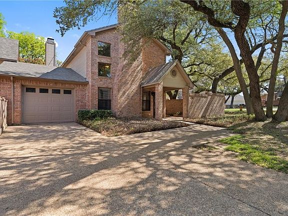 HOA covers-Lawn Maintenance, Irrigated lawn and sprinkler maintenance, Watering of flower beds, Insurance from studs out, Building maintenance outside to include roof, tree maintenance-trimming and removal, access to private pool and clubhouse with a full kitchen. Rare 3 BR, 3 bath condo in the heart of Woodway close to many restaurants and shops off of Hwy 84. The sizable primary bedroom is downstairs and contains ensuite bathroom. Upstairs offers 2 bedrooms a bath and an extra space for an office or extra sitting area. New flooring throughout. There are 2 dining areas, one large living area and a bonus "cozy space" with a wall fireplace. Relax on the covered entry way and admire the mature trees and peaceful neighborhood. Entertain friends and family at the pool located in the center of the community.