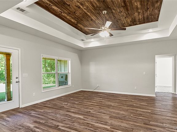 Like new home in Moundville!! Welcome home to this stunning, 4 bedroom 2 bath home located on an estate lot in the Carthage Subdivision. Built in 2021, this spacious home welcomes you with an open concept and many great features including a spacious living area that showcases stained tounge and groove tray ceilings and beautiful hard surface flooring. Kitchen with breakfast area and eat in bar, granite counter tops, stainless steel appliances, and a large walk in pantry. Elegant primary suite featuring a ship lap wall, tray ceiling, a large walk in closet, tile shower, soaking tub, and his and her vanity's with raised sinks. Large laundry room with washer and dryer included. And a backyard with a covered patio that provides a tranquil oasis for outdoor gatherings.