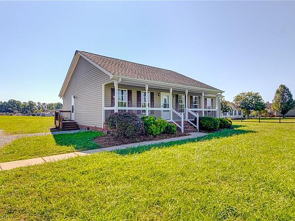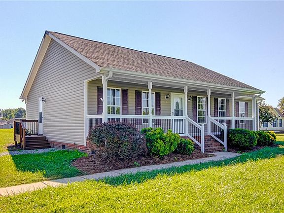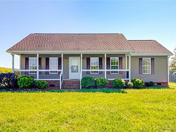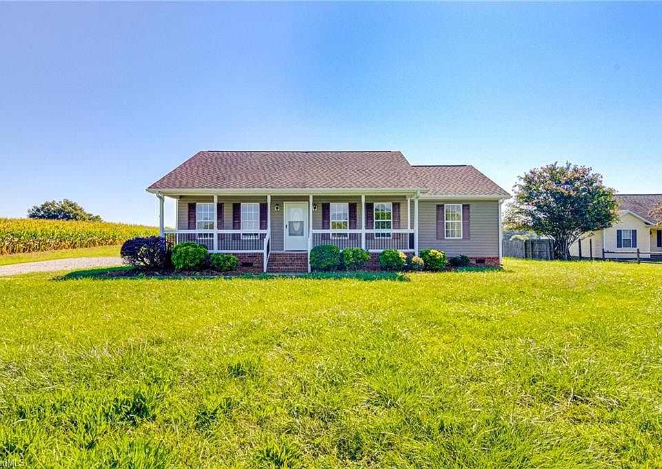 Pack your bags and bring them with you – This is THE ONE! Move-in ready, this one-level vinyl home has NEW vinyl plank flooring & neutral wall color throughout, NEW light & plumbing fixtures throughout, & NEW stainless appliances & granite countertops. The front porch is inviting & the plan makes it easy to entertain with the fireside living room open to the dining room; from the dining room, step into the kitchen or onto the deck. Beautiful kitchen with granite countertops, gray cabinets & stainless appliances including smooth-top range. Nice pantry & laundry closets. Primary suite with ceiling fan, TWO closets & private bath. Two additional bedrooms are served by the hall bath. NEW vanities, granite counters & fixtures in both baths. Situated on an acre, the yard is big & level, perfect for play and/or gardening. Welcome Home!
