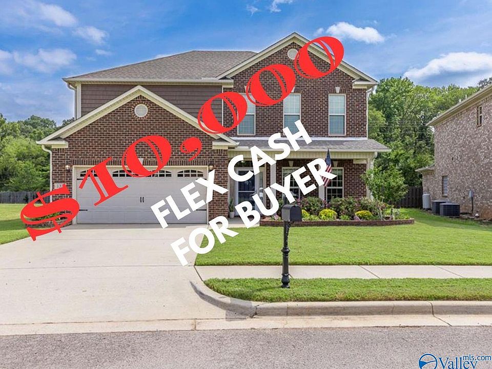 OPEN HOUSE 3/16 2-4pm $10,000 Flex Cash for the Buyer!Rate Buy down, CC etc..Full-brick home is located only minutes from gate 7 Redstone Arsenal and Publix shopping center.Wood flooring in the main areas downstairs. Kitchen opens to the living room and has a lot of granite counter space, an island ~1 year old SS appliances and an eat in area.Spacious primary bedroom on the main level.Glamour bath has separate shower, garden tub, 2 closets,double vanity. Upstairs are 3 bedrooms 2 bathrooms and a large loft being used as a bonus room.Enjoy hanging out in your fenced in back yard from the comfort of the large screened in porch.Storm shelter in garage.Fruit trees in back: Plum, peach and pear!