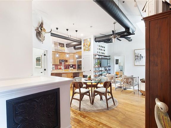 The Charm of Historic Marietta Mill Loft in a Fantastic Downtown Area Environment. This unit features a perfect blend of old-world character and modern design. Exposed brick walls, oversized windows, Original maple wood flooring, and wood ceilings with 11+ feet ceilings inspire the first floor. Renovated top to bottom. The central floor plan is open to the living and dining areas. The kitchen features ample cabinets, a breakfast bar, granite countertops, a Sub-Zero refrigerator, and Bosch appliances. There are two bedrooms and full baths on the central floor, as well as an office room. The master suite features a separate tub and shower, as well as a built-in closet system with a laundry area. The second bedroom features a built-in wall unit that includes a Murphy bed, bookshelves, and overhead storage. The lower level features an oversized bedroom with a walk-in closet, a living room, a kitchenette, a full bath, a separate laundry room, and a storage room. Convenient to Kennestone Hospital, Lewis Park, Dog Park, Marietta Mountain Trail, and Historic Marietta Square. Abundant nearby Restaurants