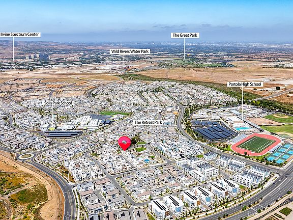 BEAUTIFUL VIEWS OVERLOOKING RETREAT PARK. Close distance to Solis Park School, K-8 and Portola High School. Experience luxury living in this stunning, fully furnished rental. This beauty provides an exceptional location overlooking Retreat Park & its pristine pools. Impeccably designed with modern and luxurious upgrades, this residence offers a sophisticated ambiance throughout. The home features high-end luxury vinyl flooring, elegant shutters, and recessed lighting, complemented by energy-efficient paid solar panels. The gourmet kitchen is equipped with upgraded quartz countertops, a full-height backsplash, stainless steel appliances, a 5-burner gas cooktop, and a spacious walk-in pantry. Upstairs, all bedrooms provide serene retreats, including the primary bedroom, which offers a spacious closet and an upgraded ensuite bathroom with tile shower walls and a dual-sink vanity. Enjoy breathtaking sunsets from the primary bedroom's balcony. The upstairs laundry room is complete with a washer and dryer, faucet sink, and lower cabinet storage. The garage is equipped with an EV charger and a tankless water heater, ensuring modern efficiency. Residents of this exceptional home have access to the community pool and park, as well as the extensive amenities of the Great Park Neighborhood. The property is zoned for the prestigious Irvine School District and just minutes to/from Portola High School, Wild Rivers, Great Park and Irvine Spectrum. Small pets will be considered with additional pet rent. Renters insurance is required. No smoking.