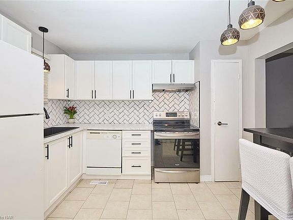 Nicely updated 2 bed, 1.5 bath townhome in great location near parks, the Welland Canal and trails! Just a quick drive to the highway, shopping, and restaurants. Features include a contemporary and spacious eat-in kitchen with white cabinetry, updated counters and a modern tile backsplash. Updated laminate and luxury vinyl flooring throughout. The oversized living room features glass patio doors that lead to your private and fully fenced yard with large patio area. The 2nd level offers a spacious primary bedroom, guest bedroom, and an updated 4pc bath with a deep soaker tub and custom tile surround. The fully finished basement offers a 2pc bath and laundry room and a rec room that can also be used as a third bedroom. Perfect opportunity for first time homebuyers to enjoy a low maintenance, nicely updated unit!