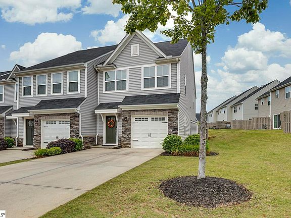 This Amazing 3 bedroom end unit townhome makes a beautiful place to call HOME! From the time you walk thru the front door, it is beautiful. As you are walking down the hall to the living room, you will pass the door to the 1/2 bath on the left and the door to the garage on the right....plus storage closet. The main floor furniture conveys along with all window treatments, all appliances including washer and dryer, outdoor patio furniture plus outdoor grill...all will transfer at closing. The decorative items like the lamps, TV's, pictures and paintings do not stay. This elegant end unit home is so special - it has a fenced back yard to separate your private yard from the common area. - Plus, it has the extra parking in front of the garage so two cars should fit comfortably. The beauty of the home is enhanced by beautiful crown moldings. The home has every upgrade that was available when it was built. The man level has awesome flooring and a fireplace with gas logs. The kitchen has granite countertops with a large island, a touch less faucet, stainless steel appliances, 42-inch cabinets and a tile backsplash with Deoband. Hardwood stairs and wrought iron spindles lead up to the second level landing, which also has hardwood flooring. The primary bedroom has a large walk-in closet, dual sinks in the bath along with a large, tiled shower. The rear yard is fenced and has an extended patio and a separate grilling patio area, 2 inch blinds in home along with a new patio door, an alarm system, built in surround sound, ceiling fans in all rooms and a tankless water heater in the home. HUGE STORAGE AREA IN ATTIC. Easy access to I-385 and/or I-85