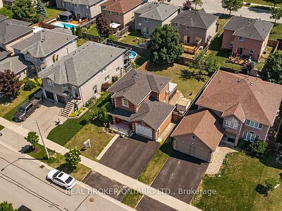 Lovely sought after family area, this fully detached all brick freehold home is perfect if you're looking to not be in a link or townhome and wanting the neighbourhood with all of the large family homes. With double wide driveway, huge fully fenced yard with large deck and inside garage entrance you will be pleased with every turn. Step inside the bright open living space with lovely stone accent wall (tv included) neutral decor, laminate flooring (2018) open to the dining and kitchen space (with handy pantry) and ceramic flooring. There is also a 2-piece bathroom on this level with crown moulding and access to the back yard via the kitchen where you will also find a handy shed tucked around the side and room for a pool, trampoline or playset. Back inside, upstairs there are two bedrooms. The primary bedroom is accessed via the double French doors and is over 22 feet long with dual closets and some families have turned this into two bedrooms (making three possible on the second level). A beautifully updated 5-piece bathroom has double vanity and deep soaker tub. Downstairs a huge space either as another bedroom or rec space (with inside garage entrance perfect for teenagers), a gym space and updated laundry area as well as a cold cellar. There is also AC, and central vacuum and you're only 6 minutes to the HWY. Welcome home!