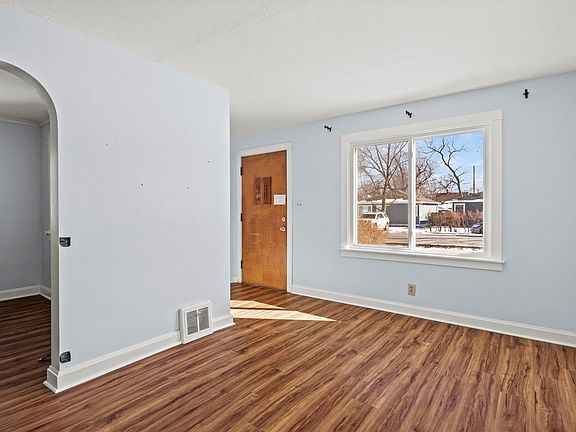 Perfect starter or downsize home with full basement and spacious, fenced yard. Kitchen cabinets match the charm of this 1 bedroom 1 bath home. Plenty of room for an island. Large dining room is bright and open to the living room. Basement has been waterproofed with transferable Perma-seal warranty. Could build a room in the basement. Has a roughed in full bath. You'll be surprised how big this home is. 1.5 car detached garage off 2nd St. Low maintenance, fenced back yard with perennial flower beds. UPDATES & DATES: New garage side door, Sept 2024. Fall 2023- LVP in the dining room, bedroom, and living room, Interior was fully repainted, New entry door to back, and the kitchen cabinets were refinished. 2020-Windows, electric panel, hot water tank, main sewer pipe, washer & dryer. 2018- roof on house and garage. Also updated is siding on garage. AC in 2004. With all the upgrades, sale will be as-is only. Great location close to highway!