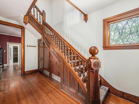 Original wood trimTree-lined neighborhoodSpacious front porchLarge windowsStunning woodworkFour generous bedroomsDecorative gables