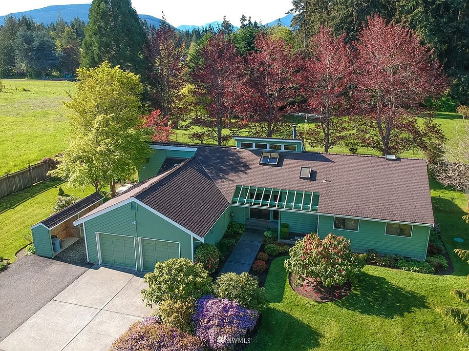 Come HOME to this gracious home nestled on 1.76 acres in the country! Well-kept through the years boasting 3 bdrms, & 3 baths. Primary bedroom has a walk-in closet & a walk-in tub in the bath. Step down living room gives separation from kitchen-dining area. Large family/craft or overflow dining room with window seat & outside access. Glass doors to enter small, enclosed sun porch. Back yard partially fenced & generous sized deck on south side to enjoy the outdoors. Property is large enough to accommodate a shop and/or guest house! Real cedar siding! Landscaping is like a park and has underground watering using irrigation water. Great woodshed for storage for the cozy wood stove in the living area! Heat pump, too. Clean & move-in ready!