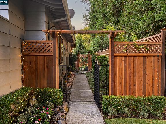 Court location, single-story residence w/ tranquility, privacy & luxury. The private landscaped yard is a showpiece, adorned w/ sculpted topiaries, flowers, boxwood hedges, water feature, new fencing, arbors & hand-forged gates. An exclusive-use easement extends the enclosed yard along the property, adding 830 sqft to the official lot size, w/ large deck & patio. Nearly 3,900 sqft of outdoor space. Inside, cathedral ceilings, crown molding & an open floor plan seamlessly connect indoor living w/ lush outdoor setting. Kitchen is a chef’s dream w/ custom cabinetry, heated Carrara marble flooring, bone China backsplash & professional-grade Viking 36” gas cooktop w/center BBQ, double ovens, ss hood, fridge, dishwasher, wine refrigerator, pot filler & farmhouse sink. Primary suite features vaulted ceilings, shuttered windows & spa-like bath w/ Carrara marble & granite finishes, oversized soaking tub, dual-head walk-in shower & granite vanity. 2nd bed w/French doors, built-ins & full en-suite bath w/ jetted tub & marble finishes. Add'l highlights: skylit laundry rm w/ Electrolux W/D, finished garage w/ epoxy floors, cabinetry & utility sink. Community amenities: pool, clubhouse, paths & direct access to Iron Horse Trail. You can also drive your golf cart across the street to CCCC.