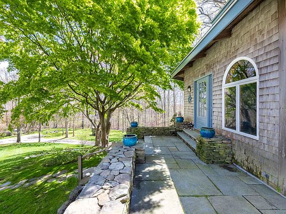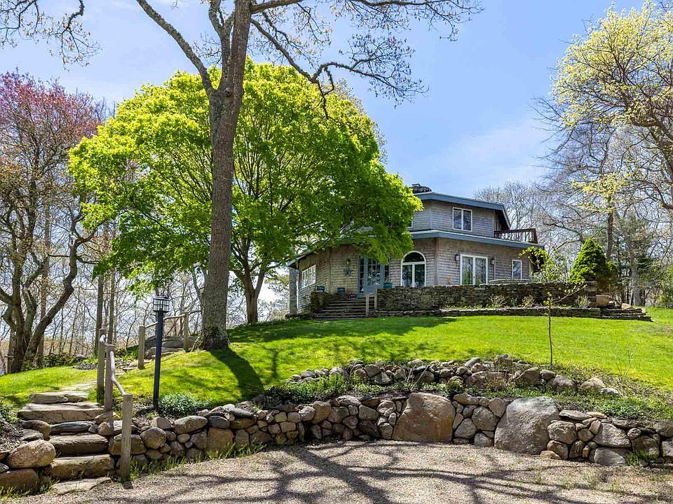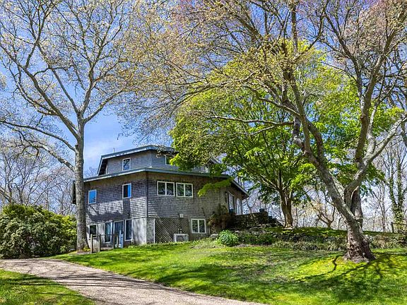 Unique Craftsman-style residence nestled on a tranquil 2-acre lot on Shubael Weeks Road in picturesque West Tisbury. This distinctive home boasts an impressive octagon design, creating a harmonious blend of architectural beauty and functional living spaces. The heart of the home is a stunning center stone fireplace that anchors the living area, complemented by exquisite wood beam details and hand carved doors that add warmth and character. The expansive layout includes five bedrooms and three baths. A curved wood staircase leads to an expansive primary bedroom suite featuring a tile bath, office, and private deck. The lower level features a fully equipped apartment with a full kitchen, perfect for extended family, guests, or rental opportunities. This self-contained space provides privacy and comfort, enhancing the versatility of this remarkable property. Outside, the lush 2-acre grounds offer endless possibilities for gardening, outdoor activities, or simply enjoying the serene natural surroundings. Located off of Lamberts Cove Road, enjoy easy access to Lamberts Cove Beach.