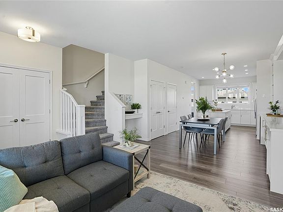 Why buy new when you can buy whole package instead? This 1519 sq ft former Dream show home feels brand new but is already full of upgrades, including custom cabinetry, a gas fireplace, oversized and extra windows, deck, fence, full front and back landscaping, and full window treatments. Plus, this home sits in one of the neighbourhood's most prime locations directly across from Brighton's Core Park, which means morning walks, picnic meet-ups, and community events are all just steps away. Step inside to soaring 9-foot ceilings that fill the main floor with natural light. The open living room is spacious and well-styled, anchored by the sleek gas fireplace and upscale wall that balances cozy warmth with clean modern character. The kitchen is both functional and magnetic, inviting friends and family to gather around the massive island, while custom cabinetry, quartz counters, mixed metal hardware, and stylish lighting set an elevated tone. Upstairs, the primary suite is a true sanctuary, showcasing vaulted ceilings and a spa-inspired ensuite with double sinks, a soaker tub, and a glass-enclosed shower. Two more spacious bedrooms overlooking the park, a full-size laundry room, and four-piece bathroom make the second floor both a highly practical and comfortable retreat. Out back, life is good. A fully landscaped yard with a built-in fire pit area, deck and patio, and underground sprinklers is designed for warm fall days and cool autumn nights. The double detached garage adds extra convenience for both storage and keeping your car parked out of the snow. When you do step out, Brighton’s shops, restaurants, and plaza are just minutes away—so grabbing dinner, meeting friends, or running errands couldn’t be easier. With bus stops, schools, daycares, and quick access to the U of S and downtown, this is about community, comfort, and creating memories in a home that feels just right. This won't last long - call to book your exclusive viewing now!
