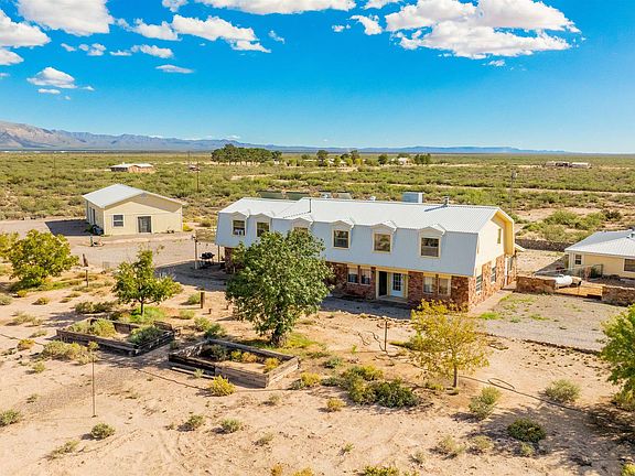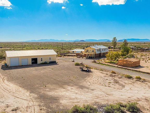 This majestic home will not be like any of the other cookie cutter homes - it is well worth your time to see! Downstairs has lots of room for a busy lifestyle. The entrance/living room is huge with all tiles floors, pellet stove and a separate oversized study/hobby room with built in shelves. The remodeled kitchen has an eat-at bar, dining area and a massive walk-in pantry. Upstairs has 4 bedrooms plus an office which could be the 5th bedroom. Plus it has 3 full baths and a pellet stove. The master suite is excessively large and has a completely remodeled/updated bathroom. This master suite has a perk which few offer and that's a private balcony on the east side that will provide you wonderfully shaded afternoons with phenomenal views of the mountains and tranquility. Downstairs, you'll appreciate the centrally located laundry room which also has a 1/2 bath for everyone's downstairs convenience. The hallway wall leading to the sunroom has lots of cubby holes for those things you use everyday but don't want them tucked away where it's inconvenient. The sizeable sunroom has a wall of windows giving you wonderful natural light. The 5/6th bedroom is off the sunroom and provides privacy to whomever enjoys it. You'll see a large separate building on the west side which houses an in-ground pool - so so many possibilities for family fun as well as entertaining friends. The large back yard is completely rock fenced and has the pump house which also houses the water softener. The east side of the house has a 3-car garage which includes a 2-car garage, an RV garage plus a extra-large area for your other toys, machinery or just lots of tools. This large garage/workshop has so much to offer the car enthusiast or even create your own space for your hobby or get-a-way. All this sits on 8.75 acres which has 7 pecan trees, a green house and unbelievable views. This will fit all your wants & desires but you'll have to see it first - do that today.