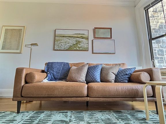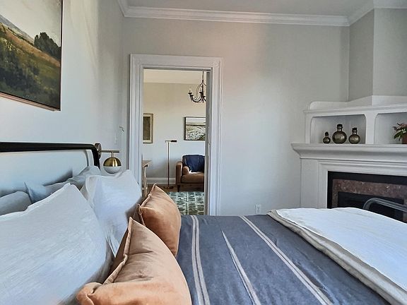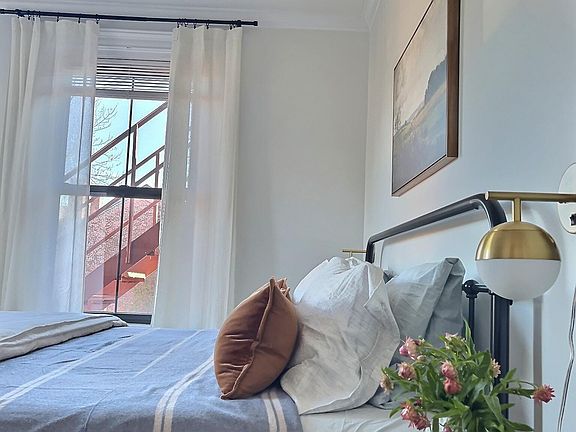 A beautiful two bedroom fully furnished apartment with sky high ceilings, beautiful light and architectural details. An original fireplace, and views of the adjacent stone church lend charm. The space was designed to be a relaxing place to call home. Our historic building, circa 1896, is unlike any other in the city.