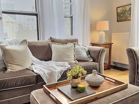 Historic details like original decorative fireplaces and original wood floor make this apartment special. Built ins and closet space for storage are functional. Full bathroom with tube.