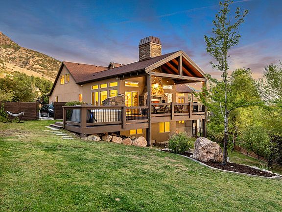 Your private resort at home! 20 minutes to Snow Basin! Nestled against the mountain with breathtaking views, this home features a luxurious main bedroom suite with private balcony, mature fruit trees, and a secluded yard. Enjoy the large covered deck with gas/wood fireplace, hot tub, and outdoor shower. Perfect for entertaining-complete with walkout basement, 3 fireplaces, RV parking, and whole-house water filtration.
