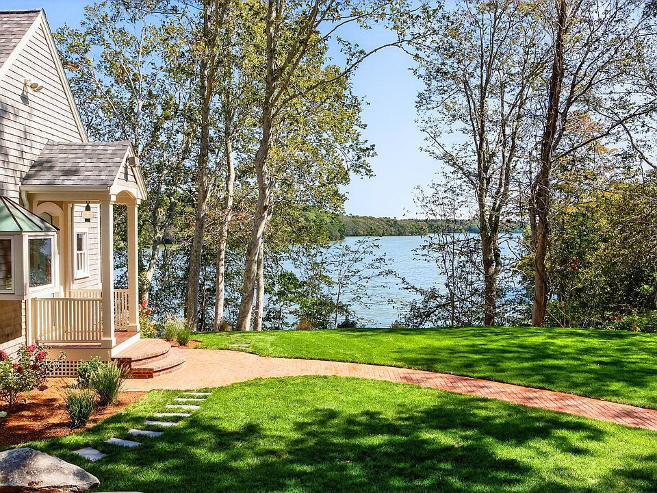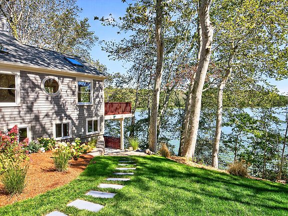 Views...views...views! Restored and renovated 2,722 square foot waterfront home on recreational Sanuit Pond. This Eastlake-style home is a blend of cottage and modern architecture with nooks, wide open spaces and cathedral ceilings. Wood floors throughout main living space, marble/tile baths, Emtek brass hardware and chandeliers compliment and enhance the custom materials and design. High-end commercial appliances, security and underground sprinkler systems for this tastefully landscaped property. Private trail on property leads to the future location of a private dock. Conservation process to be followed by buyer(s) to determine private dock type for this location.
