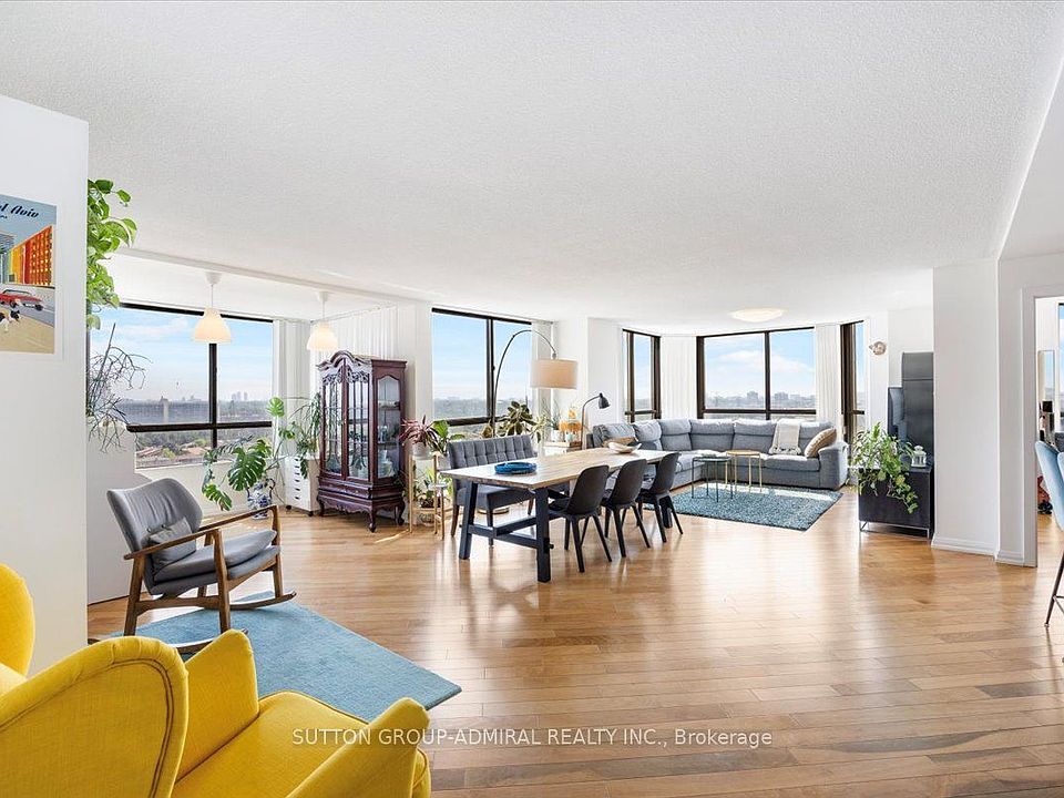 Welcome to 131 Torresdale Ave #1802 - a bright, spacious, and beautifully maintained 3-bedroom + den condo offering incredible value and comfort in a well-managed community. This suite features an open-concept living and dining area with hardwood floors, large windows, and amazing natural light throughout - an ideal setting for everyday living and entertaining. Enjoy unobstructed southwest views from every room. The upgraded kitchen includes quartz counters, stainless steel appliances, a large island, tile backsplash, a double sink, and a pantry, plus a charming breakfast area overlooking the dining space. The primary bedroom features his-and-hers closets and a 4-piece ensuite with in-suite laundry. Two additional bedrooms, a den, a second full bath, and generous storage complete the layout - perfect for families or anyone needing extra space. Residents enjoy top-tier amenities: outdoor pool, gym, hot tub, sauna, party room, and a fully equipped BBQ area. This unit includes two tandem parking spots conveniently close to the elevator. Maintenance fees include all utilities + cable TV & internet for worry-free living. Surrounded by parks, trails, shopping, dining, schools, and transit - a fantastic place to call home!