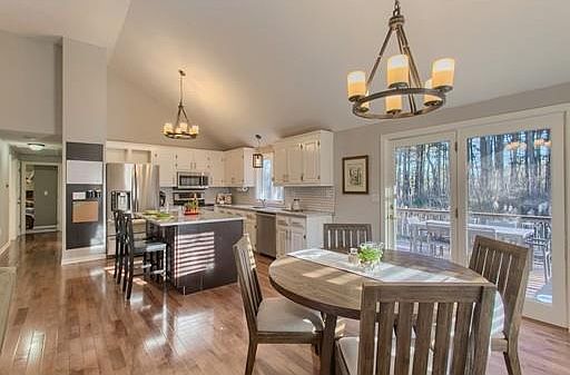 Beautiful raised ranch on over 1 acre in desirable North Tewksbury location! Close to Trull Brook Golf Course and Tennis Center, Long Meadow Golf Club, highways (495/93), shopping and restaurants. This open concept home features an open living room/dining room/kitchen combo with hardwood floors, picture window, updated kitchen with a large island, gorgeous quartz countertops, stainless steel appliances, and sliders to a vinyl deck that overlooks wooded conservation land that ensures lots of privacy. Main level also includes 3 bedrooms and 1 3/4 baths (master bedroom bath and main bath). Finished lower level features a large family room with wood stove, laundry/storage room, and entry to 1 car garage.