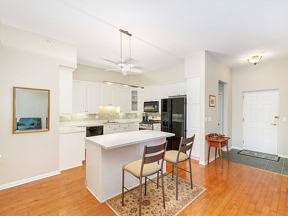Enjoy luxury living in the heart of downtown Elmhurst at Museum Square. This spacious 1 bedroom, 1.1 bath condo offers an open floor plan with hardwood floors through-out. The all white kitchen features an island with ample space for cooking and storage. Step outside to your private terrace, perfect for relaxing and entertaining. Additional features include in-unit laundry, a storage locker #33 on the same floor and one deeded car garage parking space #69. Updates include: new HVAC (2022), washer & dryer (2021) and gas oven/range (2020). Museum Square is just steps from the Elmhurst Library, Art Museum and Wilder Park. Just one block to the Metra station, dining and shopping. Experience the best that downtown Elmhurst has to offer!