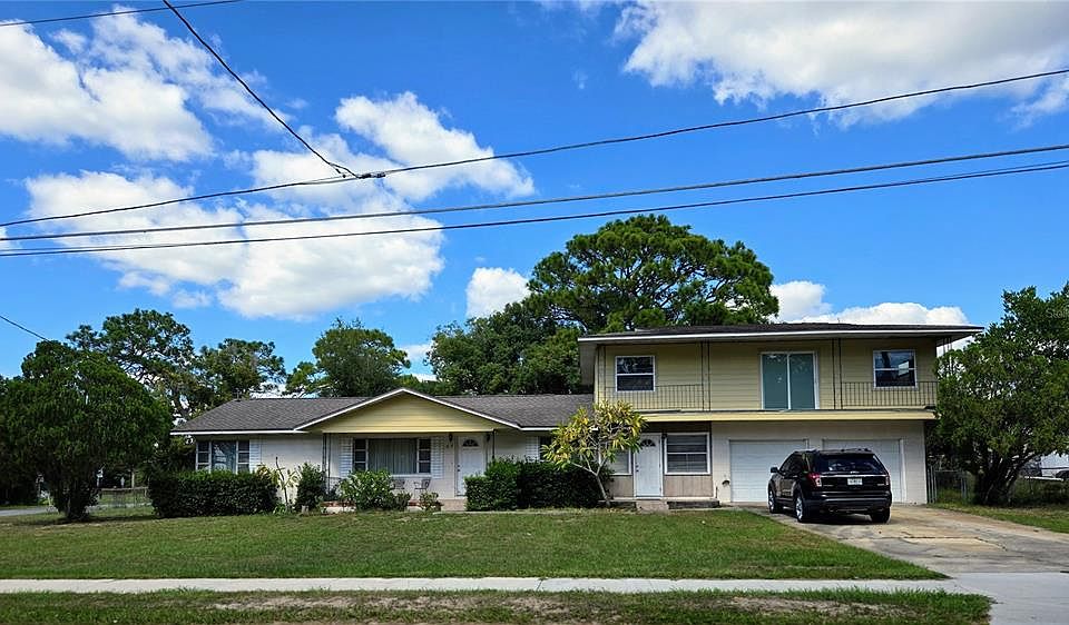 Don't miss this incredible investor opportunity!!! This mid-century modern two-story estate home offers solid bones and excellent potential for renovation. This home is nicely set on a large 1/3 acre corner lot with plenty of room to expand. The layout includes dual entries with two outdoor open porches making this an ideal duplex conversion candidate. The property features original hardwood floors in lower level bedrooms, along with the dining/living room. Bonus could be the trendy vintage tile colors in bathrooms, a centrally positioned kitchen, unique corner windows in both the primary bedroom and living/dining room. Just off the kitchen there is an enclosed patio/sunroom with laundry hookups and access the outdoor patio and additional concrete slab with a beautiful tree covered canopy. The spacious second story is accessed by a spiral staircase in the breezeway entry leading to an expansive living space featuring sliding doors leading to an outside upper deck, full bathroom, bedroom, and bonus room (sewing) with built-ins. The exterior upstairs has newer exterior Hardie Board along with updated windows. Sold AS-IS for CASH only. Property requires significant work and is best suited for experienced investors or contractors ready to transform this home into its full potential.