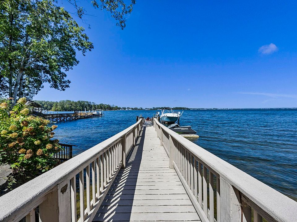 Experience lakefront living with BIG WATER views in desirable Hallmark Shores. This home has 3 bedrooms and 2 baths on the main level. It has a finished basement/in-law suite with an additional bathroom and walk out to the lake. Magnificent views throughout the home, including the basement and kitchen. French doors open to the front deck from the master bedroom and dining room. Yard landscaped with lake irrigation established. Recently completed outside lighting project. Sea wall, rip rap and steps directly to the lake with sandy beach. Year-round water. Private dock, boat and jet ski lifts in place. Community features included: boat ramp, dock, tennis courts and sports field. Disclaimer: CMLS has not reviewed and, therefore, does not endorse vendors who may appear in listings.