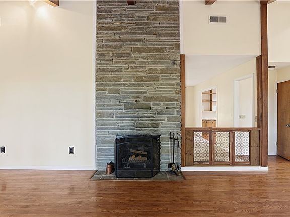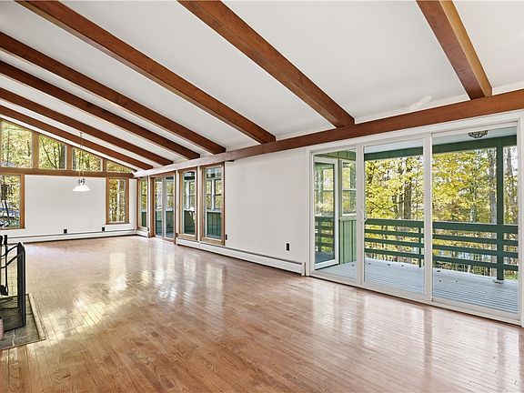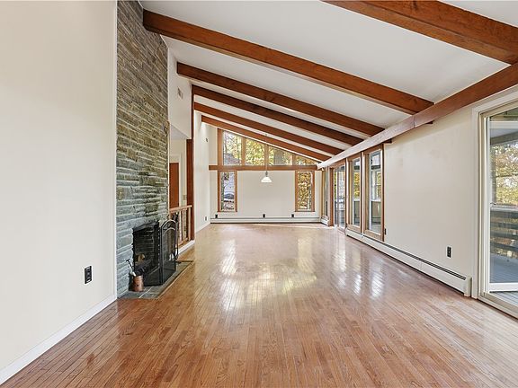 Stunning four bedroom, three full bath contemporary ranch offers over 3,000 square feet of living space on a nice lot surrounded by mature trees. This beautifully maintained home features an open main floor with hardwood floors, generous natural light, and easy first floor living. A fireplace on each level to keep you cozy and warm on the cold nights. The lower level is fully finished with brand new flooring, offering excellent additional living space for a family room, guest suite, recreation area, home office or a gym. The large back deck and patio provides a peaceful space to relax or entertain. Peace of mind comes with major recent upgrades, including a new roof (2023) and a new boiler and central AC unit (2024). An attached two car garage offers convenience and additional storage.