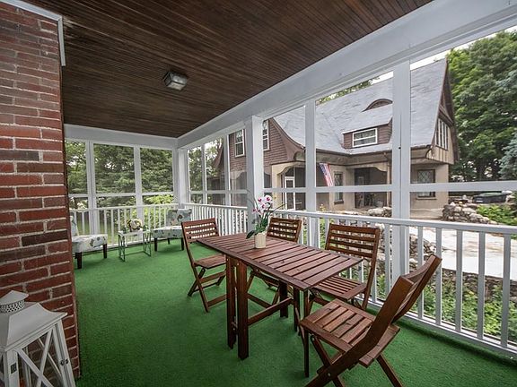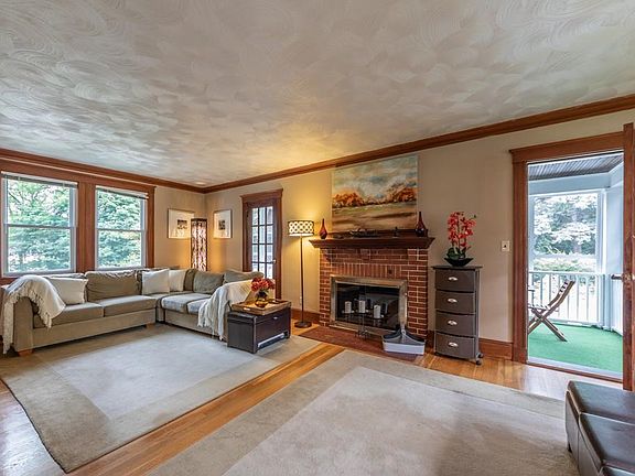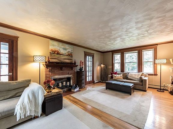 Gracious Colonial home in the desirable Endicott Estate area. The home welcomes you with a large foyer, warm wood details, & hardwood floors throughout. French doors lead to the formal dining room with built-ins and fireplace. The front to back living room has a fireplace & access to a sunroom. The main level features a modern kitchen with stainless steel, quartz countertops, and updated half bathroom. A large deck leads to a huge backyard filled with perennial plantings. The second floor has a full bathroom & three bedrooms, all featuring walk-in and/or custom designed closets. Spacious master with sitting area/office. New roof, new windows, blown in insulation, & wrap around driveway that fits 6+ cars. 3 zone heating system has been serviced yearly & the home has been deleaded. The lower level adds additional space with a partially finished basement perfect for a playroom or family room. This home is truly a classic and situated ideally for commuters with highways and rail close by.