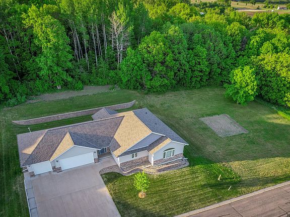 Check out this beautiful 2016 built rambler with over 4000 sq. ft. in desirable neighborhood close to golf course, school & backing up to Popular Wobegon Trail. Spacious layout with one level living featuring 36” panel doors, primary bedroom with WIC & private bath, large kitchen with center island, living room with vaulted ceilings, office which could be used as 5th BR, sunroom leading to back patio, guest bedroom, laundry room & huge dining area all on mail level.  This home is perfect for entertaining. Lower level features a family room, game area, two more bedrooms with WIC's, full bathroom, two storage rooms, plus mechanical room with endless storage throughout this home.  You will appreciate the finished and heated 3-stall garage with floor drain.  Relax on the back patio enjoying this secluded lot with sprinkler system, nicely landscaped with no back or side yard neighbors.  This home is loaded with amenities and priced to sell!