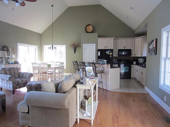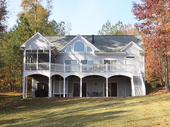Lake Gaston waterfront fully furnished home with an Open Floor Plan. There are views of the Lake from most of the rooms. One level living. This home has only been used as a weekender. One of the last homes built by William Garner, a local Contractor. Lots of glass lets lots of light into the living area of the home. Three Bedrooms upstairs. Full finished walk out basement with plenty of space for family fun. Has a large game room and two undesignated rooms. Outdoor shower is a hit with everyone. Lakeside firepit to enjoy after fishing and swimming. Neighborhood paved roads, trash pick up & convenient to amenities. This home will not disappoint you - don't miss it. Superior walls in basement.